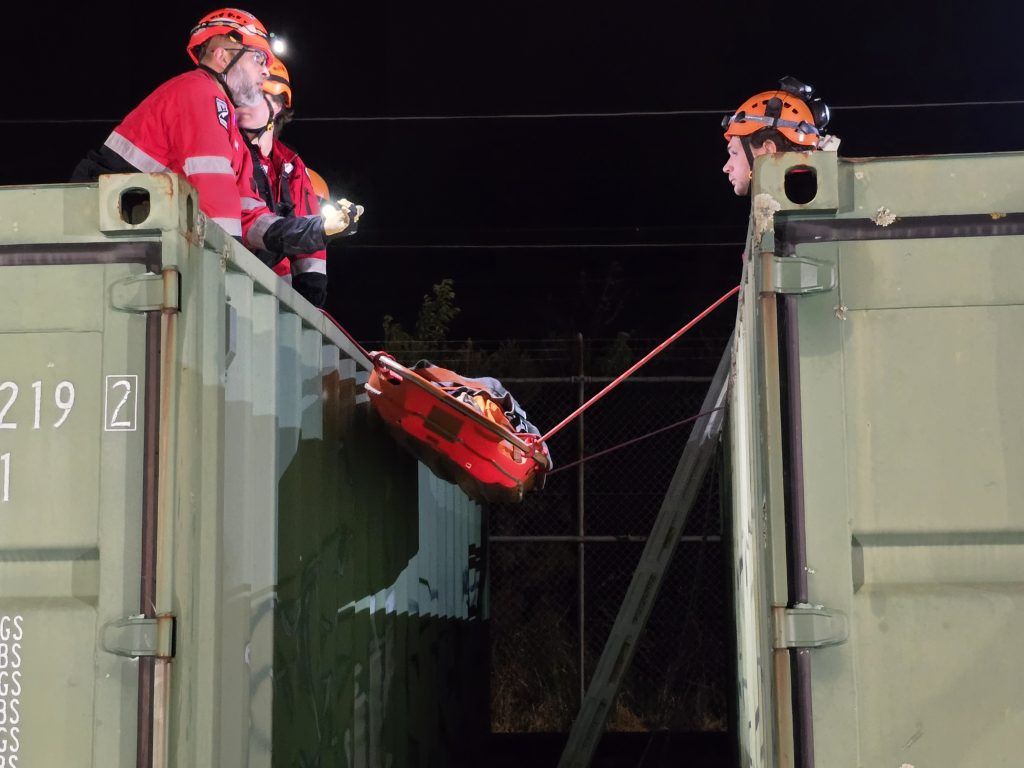 The scenario was – the patient was trapped between 2 containers with no access except from above.