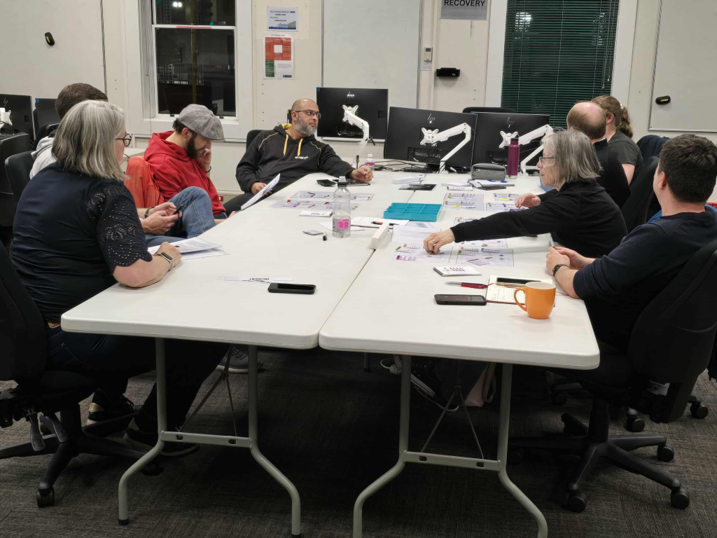 Wellington Free Ambulance staff met with us for a theory exercise around the table.